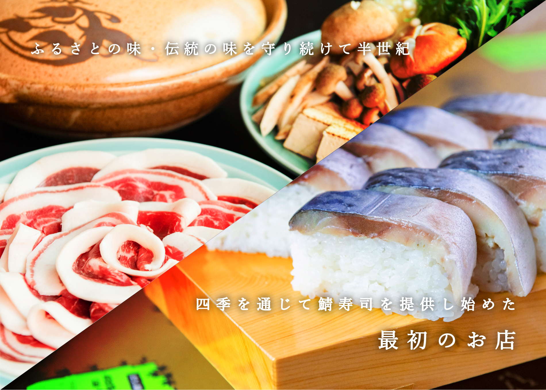 当店は、伝統料理であった鯖寿司を、“ホロンピア'88北摂・丹波の祭典”に出店以降、四季を通して提供し始めた最初のお店です。ぜひ、当店の看板メニューをお召し上がりください。